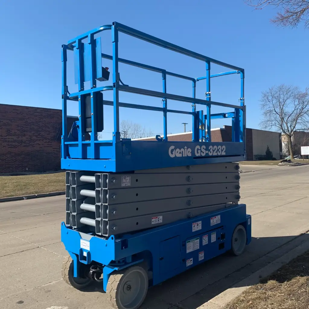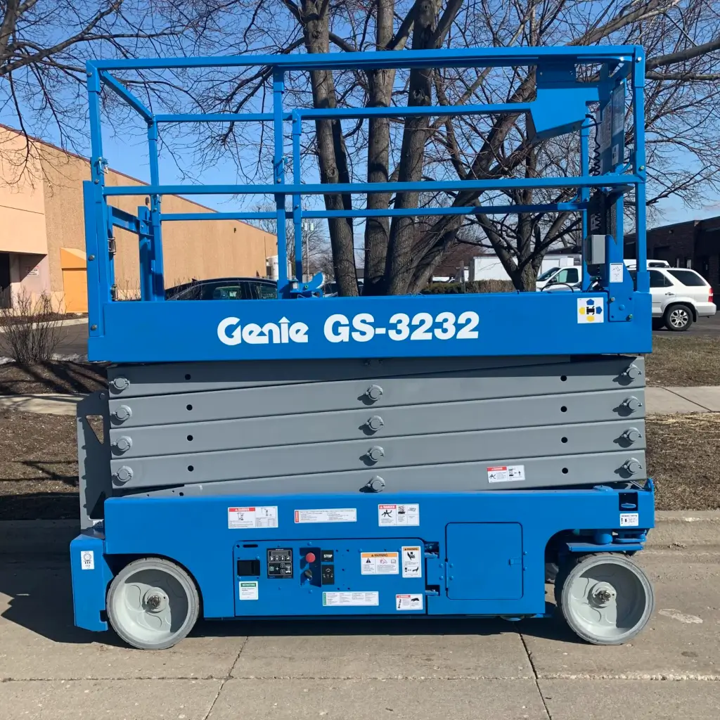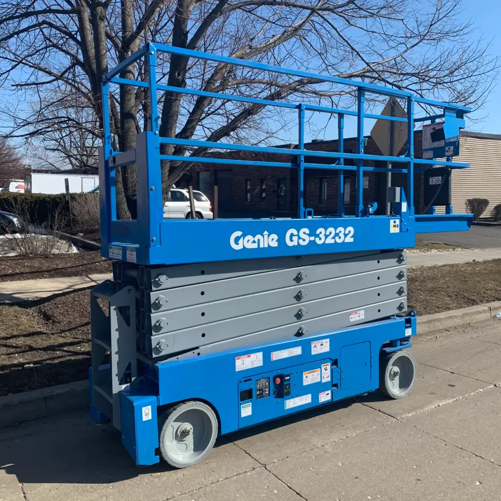The Genie GS3232 is a widely used 32-foot electric scissor lift designed for indoor environments where maneuverability and vertical reach are required. The Genie GS3232 combines a narrow profile with stable electric operation, making it a dependable choice for contractors and facility teams working at elevation.
