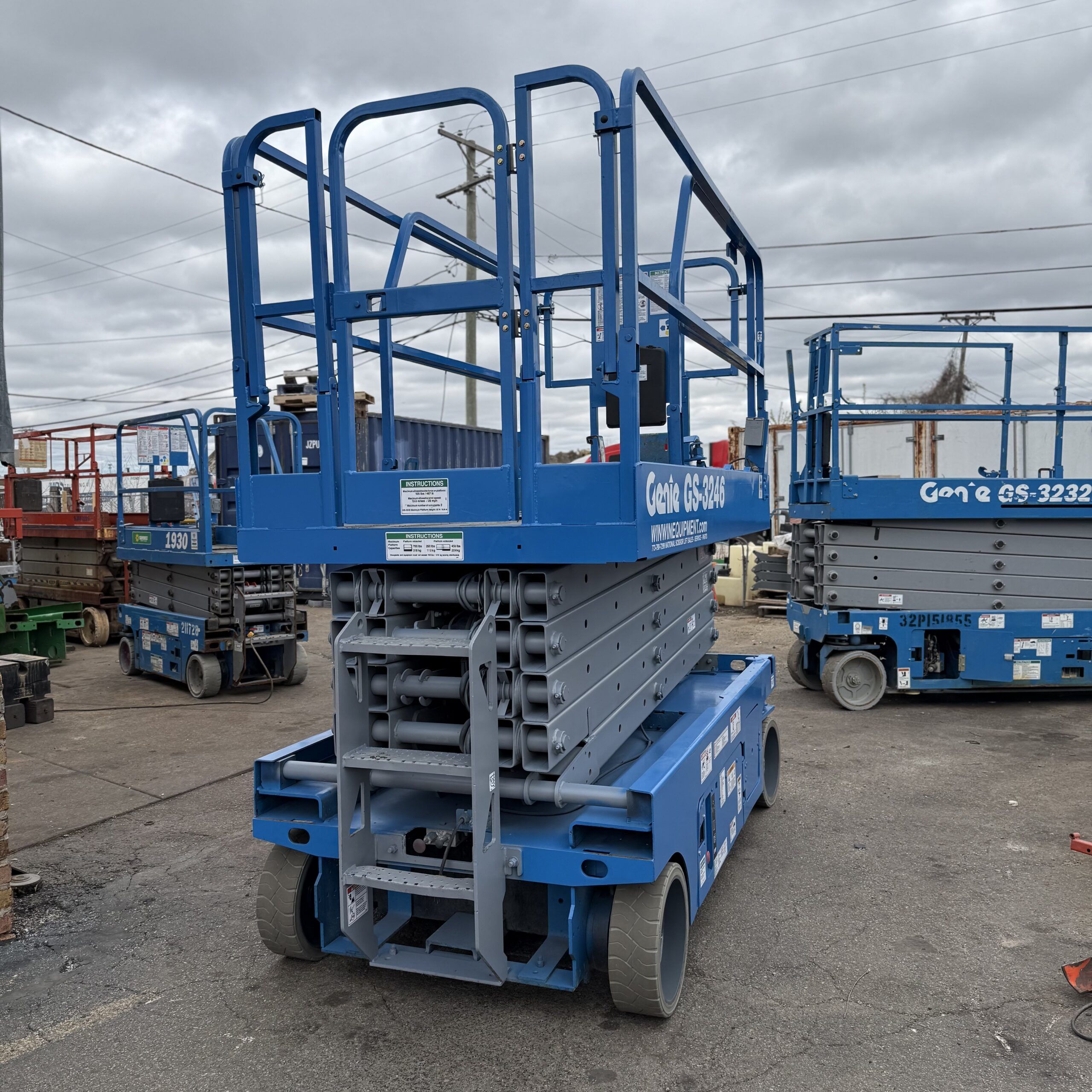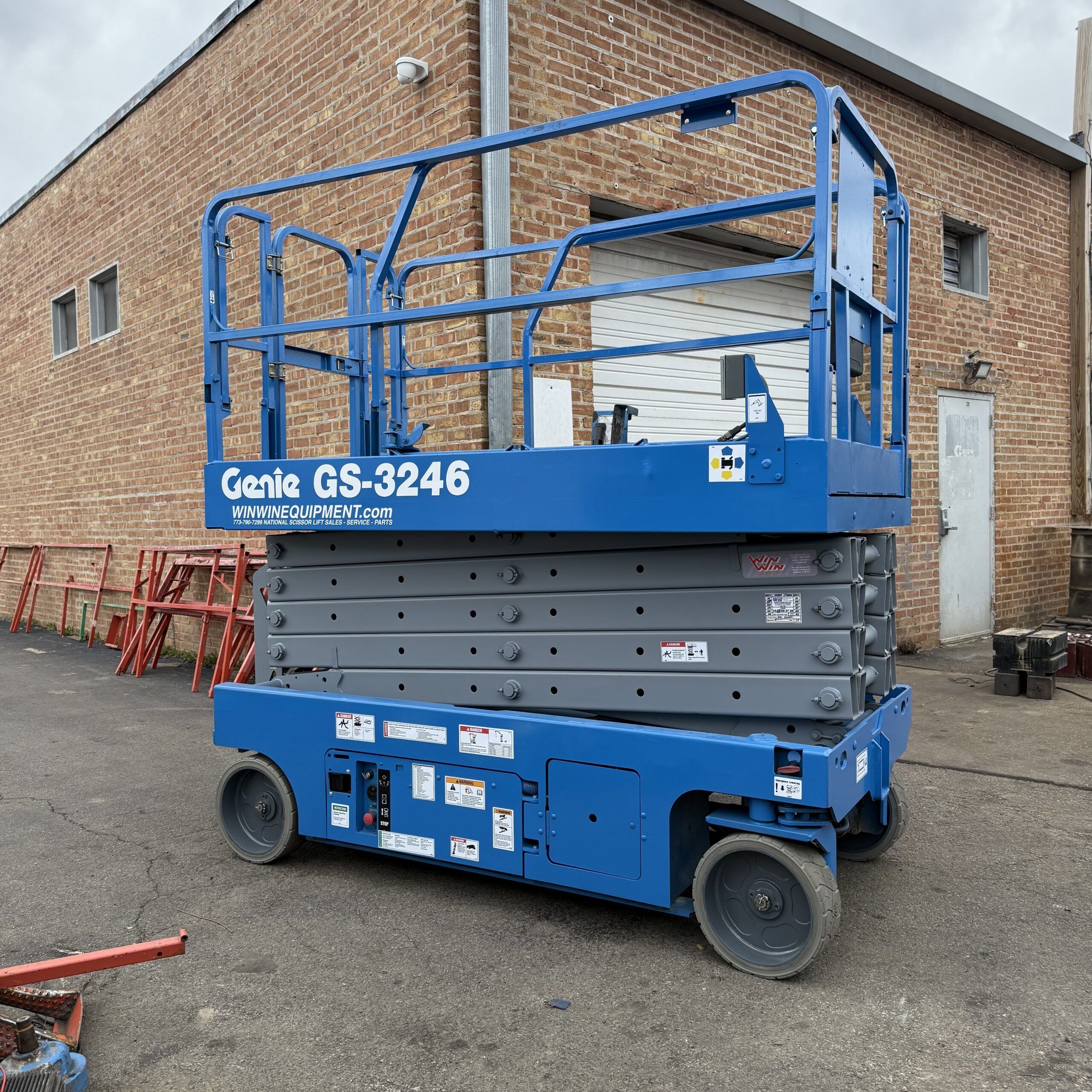 Win Win Equipment refurbishes each Genie GS3246 at our Addison, Illinois facility with attention to every system that affects performance and safety. Drive components, hydraulic cylinders, electrical controllers, batteries, tires, and platform controls are all inspected and serviced as part of our standard refurbishment process.