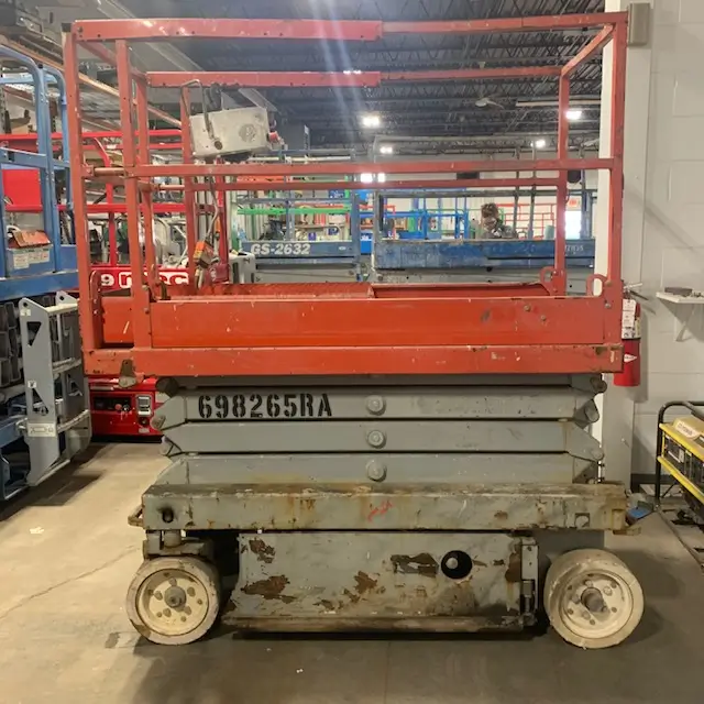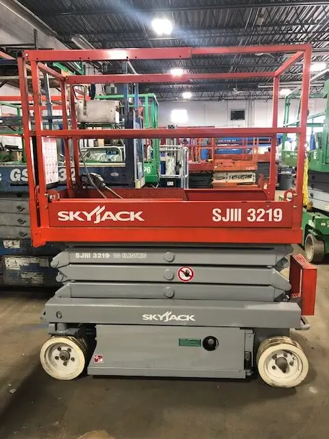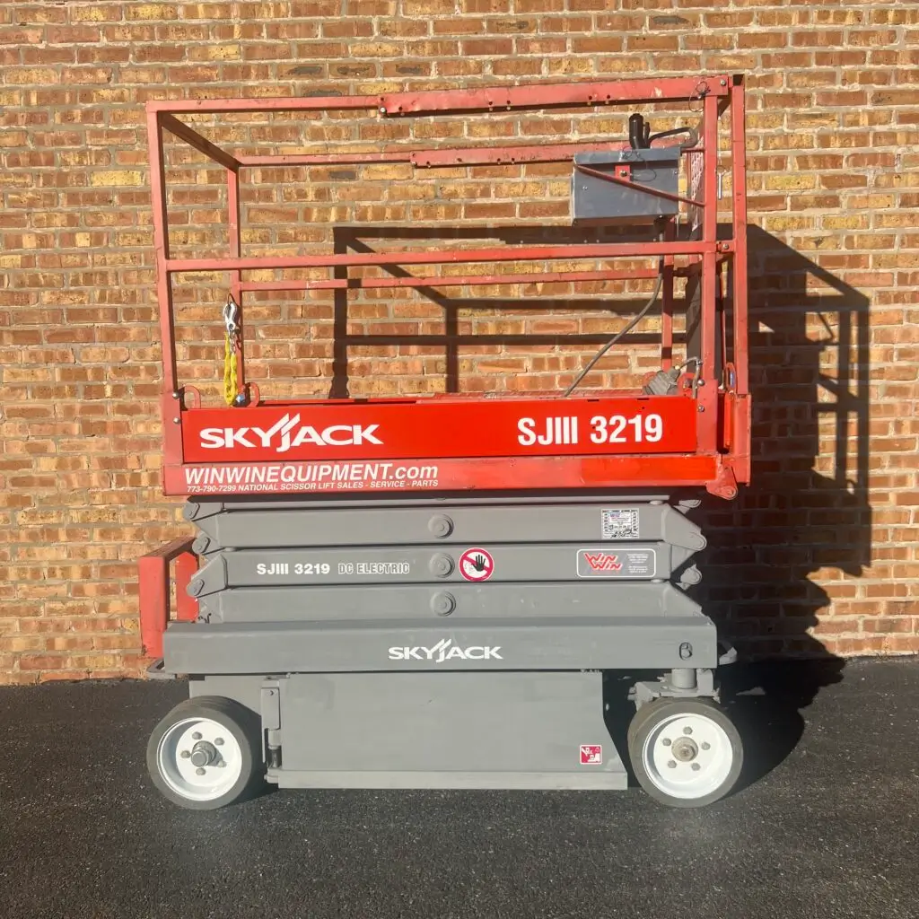 DC Electric Scissor Lift for sale! This narrow Skyjack SJIII3219 has robust steel construction – strong and durable.