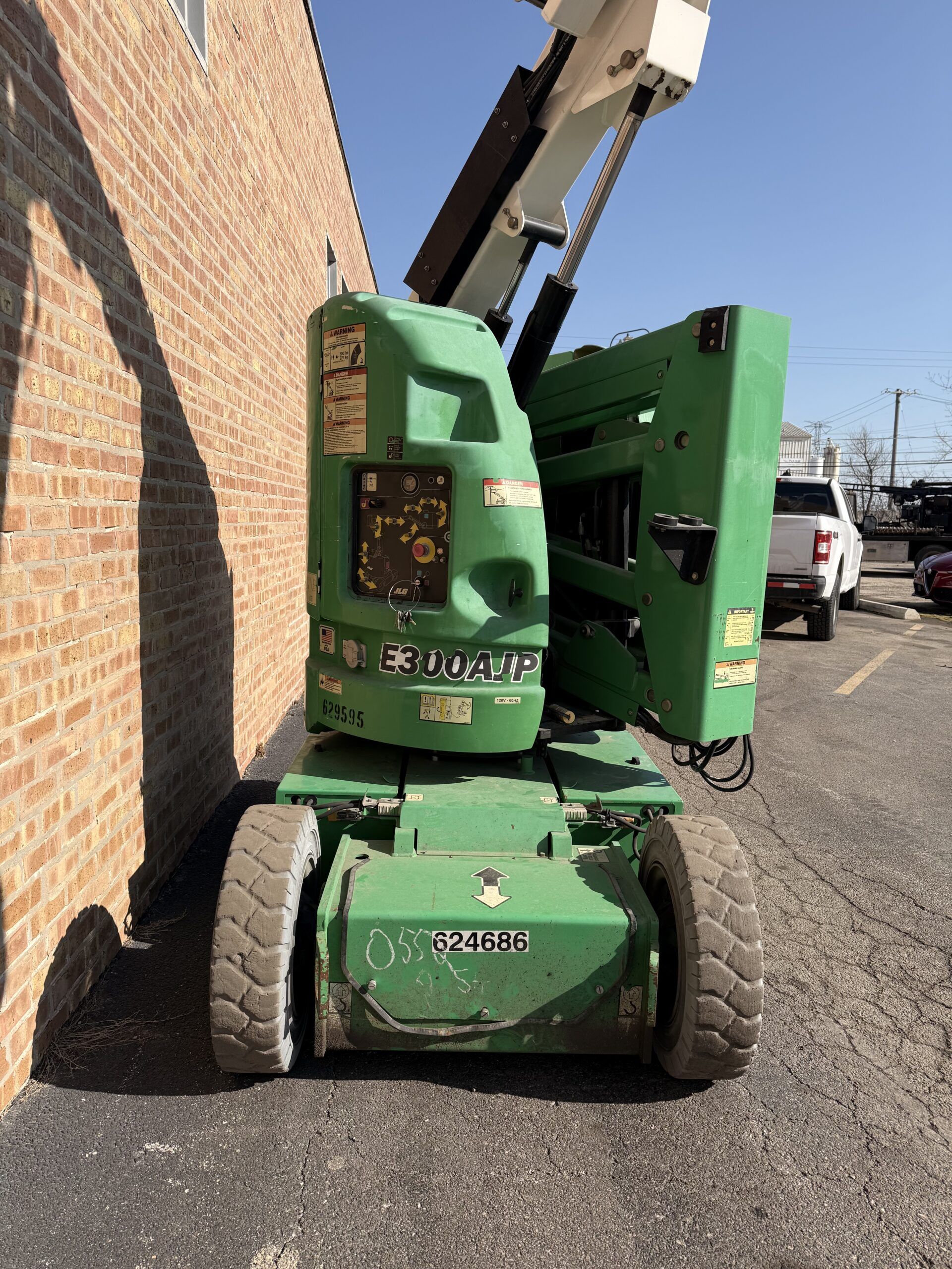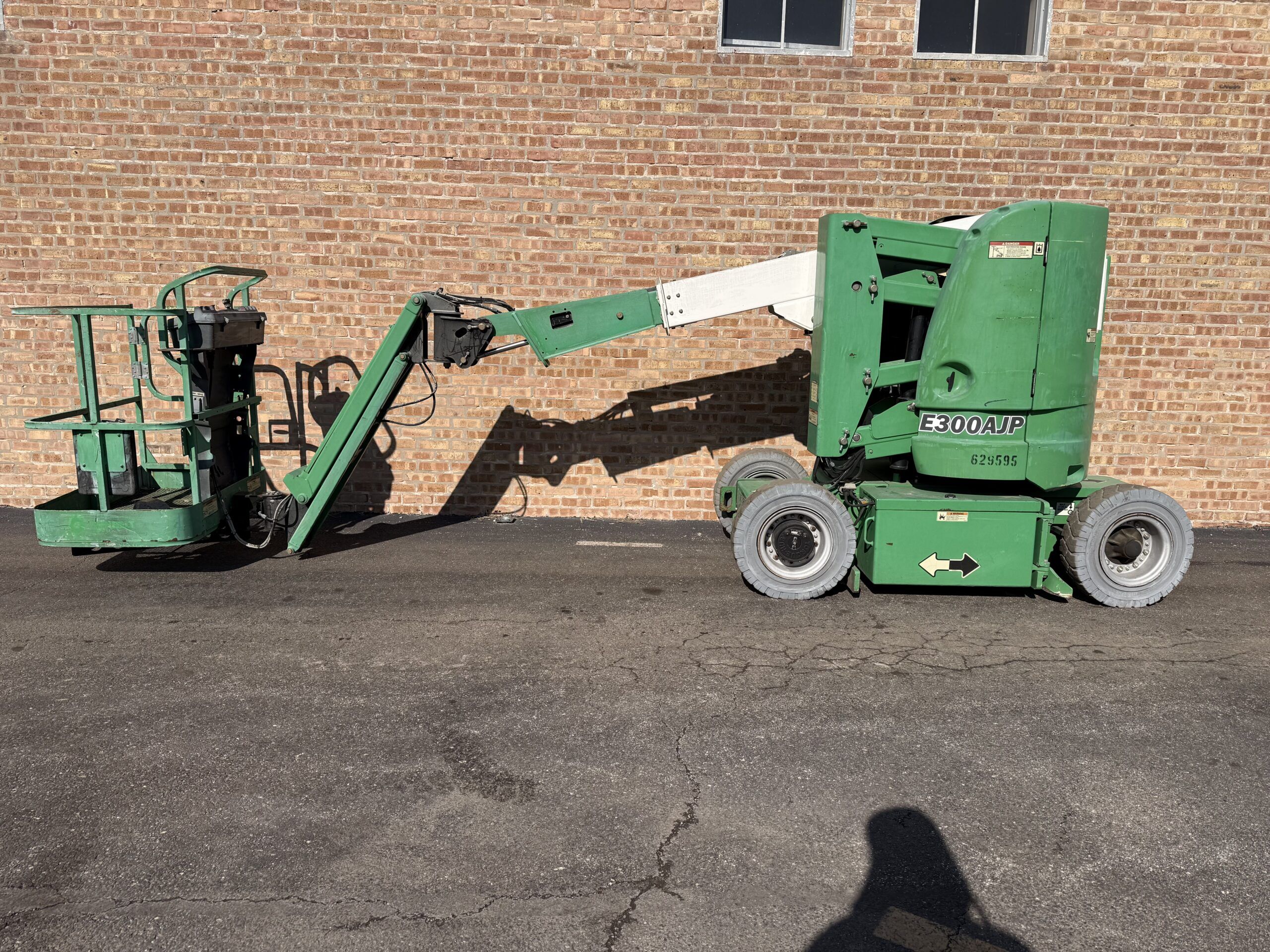 The JLG E300 AJP is a compact electric articulating boom lift designed for indoor environments where vertical reach and maneuverability are required. Its articulating arm allows operators to reach over obstacles while maintaining a small footprint for tight interior spaces.
